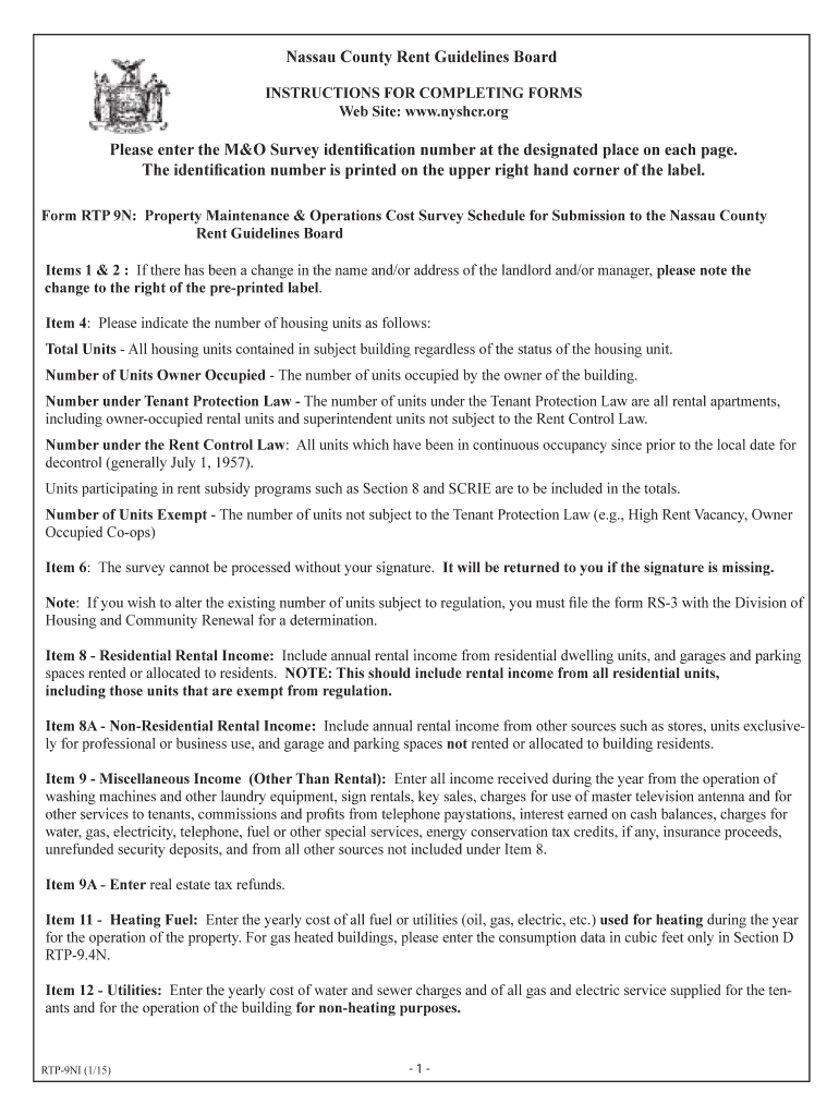 Nassau County Rent Guidelines Board INSTRUCTIONS FOR COMPLETING FORMS Website: www.nyshcr.orgPlease enter the M&O Survey identification number at the designated place on each page. The identification