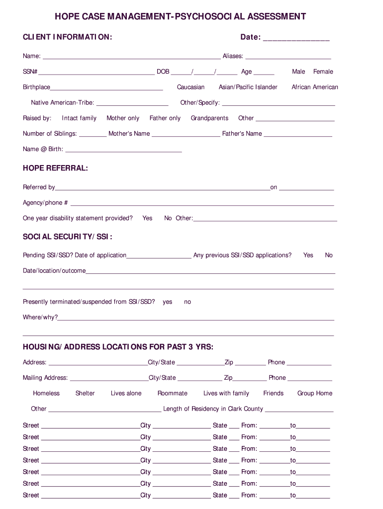 Get the free Hope Case Management Psychosocial Assessment Form