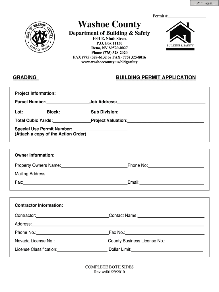 Get the free Washoe County Building Permit Application