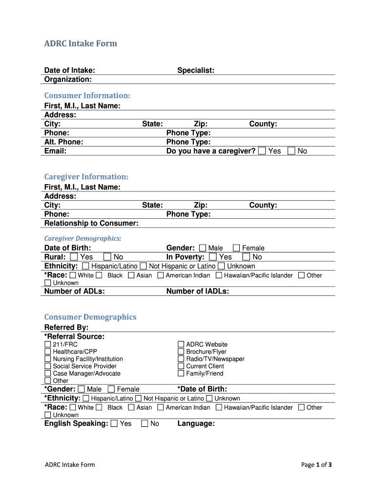 Get the free ADRC Intake Form