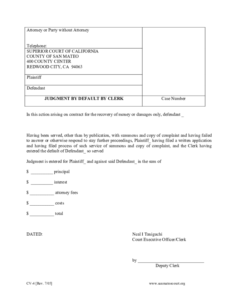 When filling out the California Judgment by Default by Clerk, several common mistakes can occur. Frequent errors include incorrect calculations of amounts, failure to sign the document, and omission of required fields.