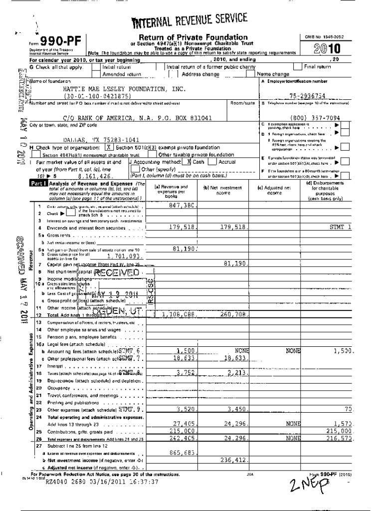 STERNAL REVENUE SERVICE Return of Private Foundation990 PFFarm \' Department of the Treasury Internal Revenue Service2@10Note The foundation may be able to use a cove of this return to satisfy state