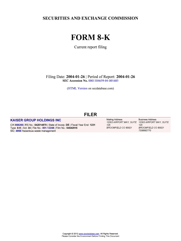 Get the free KAISER GROUP HOLDINGS INC (Form: 8-K, Filing Date: 01/26/2004)