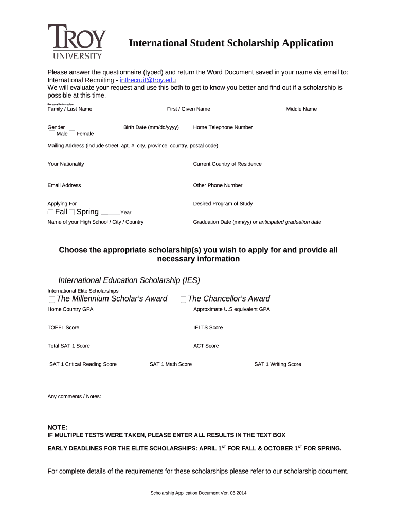 Instructions for the form Please answer the questionnaire (typed) and return the Word Document saved in your name via email to: International Recruiting - intlrecruittroy