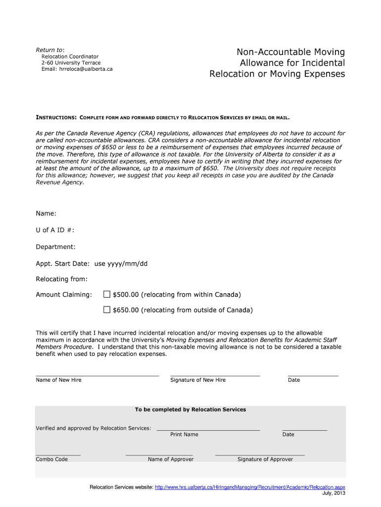 Employees who have non-accountable moving expenses covered by their employer are required to file non-accountable moving.