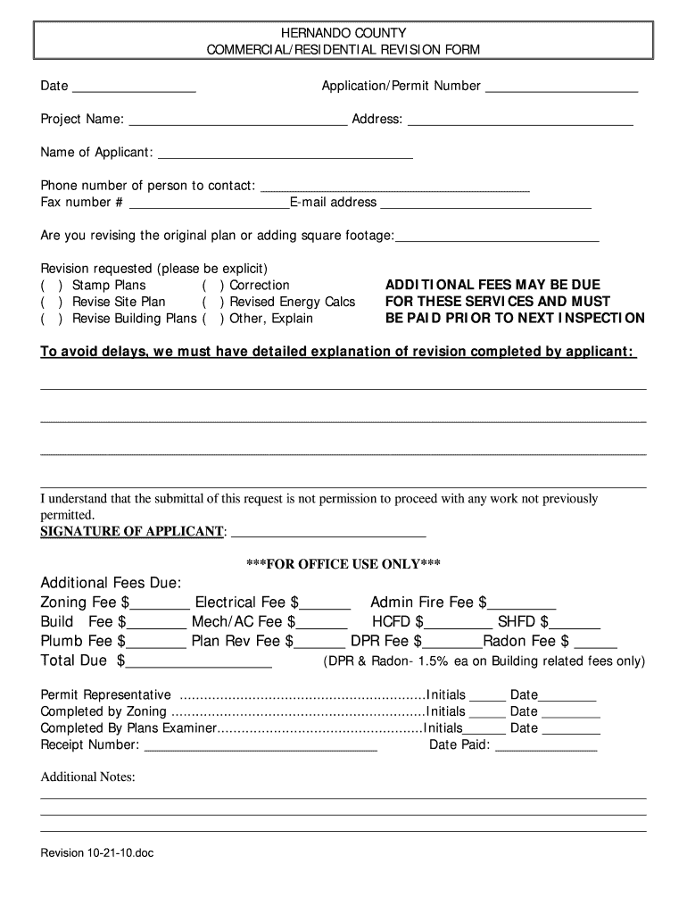 Get the free Hernando County Commercial/Residential Revision Form