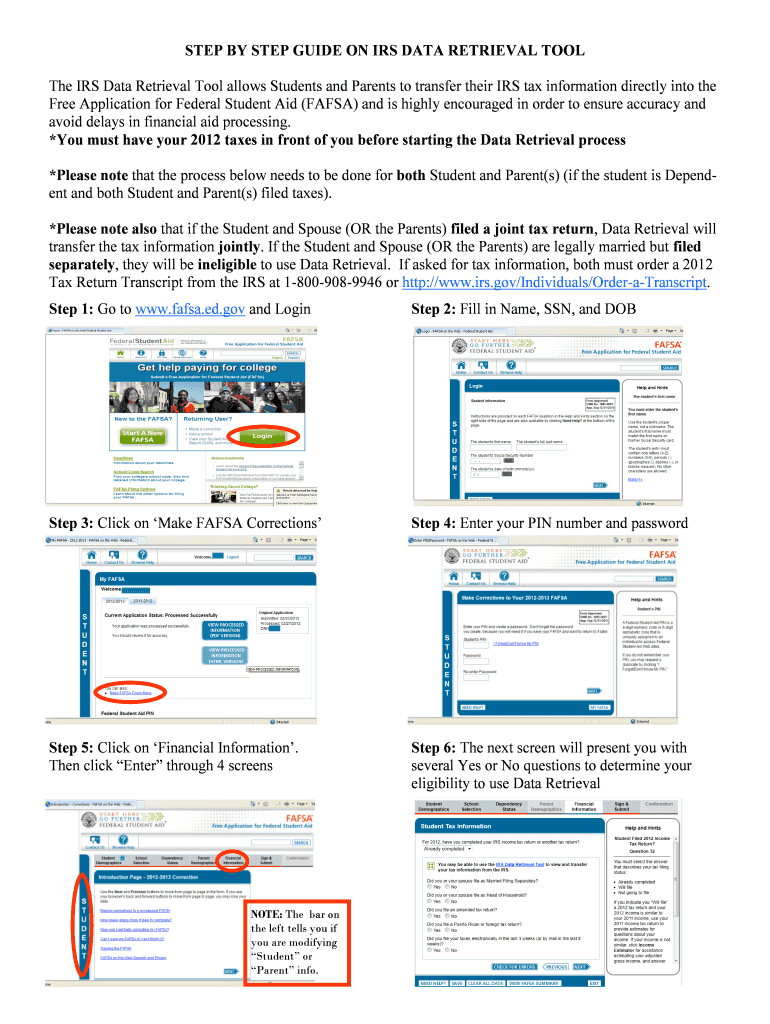 The IRS Data Retrieval Tool Guide is an essential resource for students and parents navigating the financial aid process. This guide explains how to use the IRS Data Retrieval Tool, which facilitates the direct transfer of IRS tax information into FAFSA applications. By utilizing this tool, users can avoid delays and ensure the accuracy of their financial aid submissions, making it a critical component in the student financial aid process.