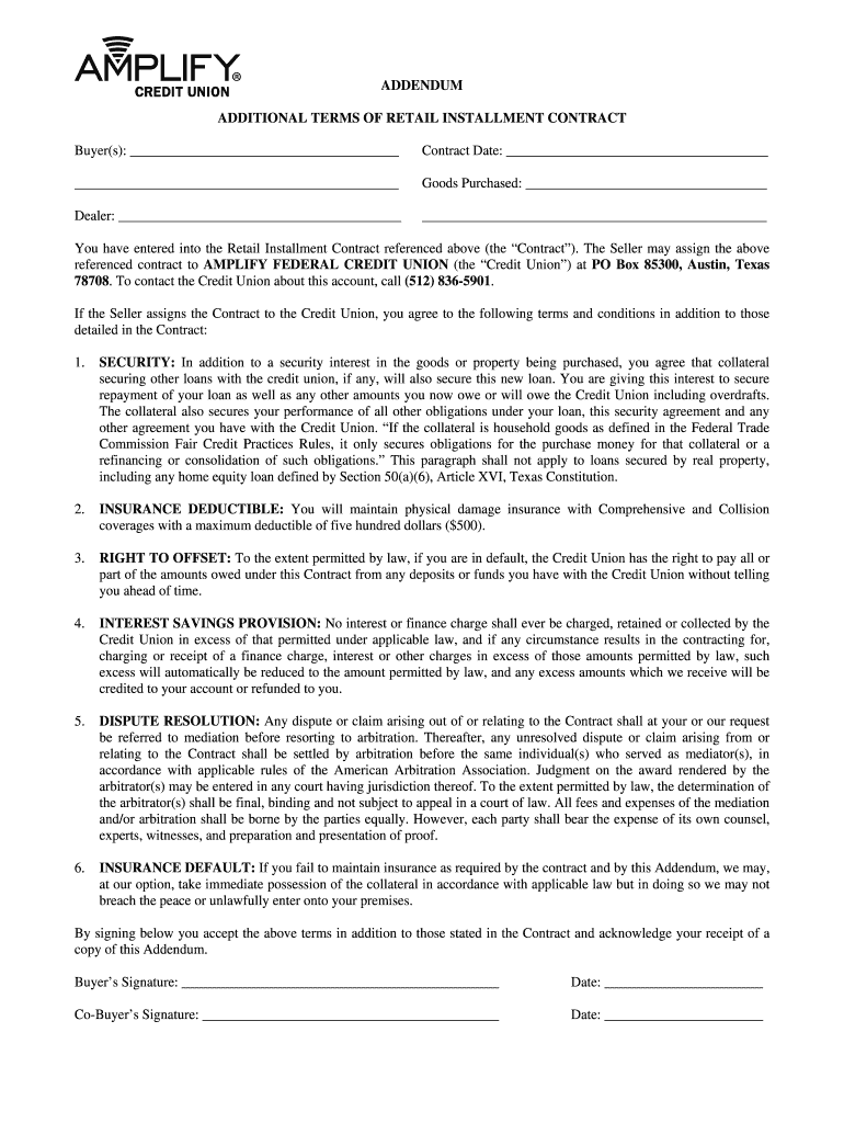 Purpose and Benefits of the Retail Installment Contract Addendum