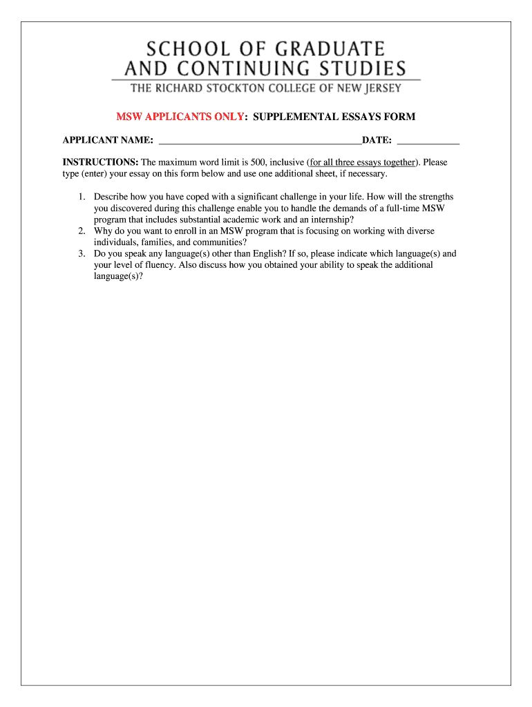 Who Needs the MSW Applicants Supplemental Essays Form?