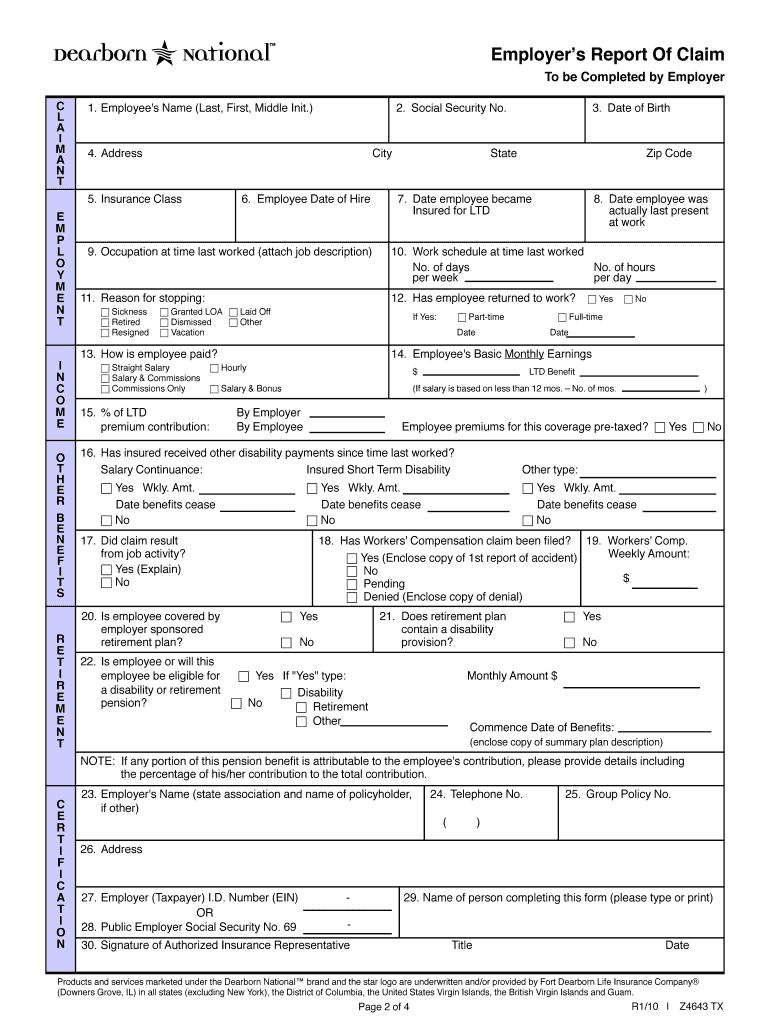 The Long-Term Disability Claim Form is a critical document designed for Texas employees seeking disability benefits through their insurer, Fort Dearborn Life. This form plays a key role in the claims process, providing essential information that helps assess eligibility for long-term disability benefits.