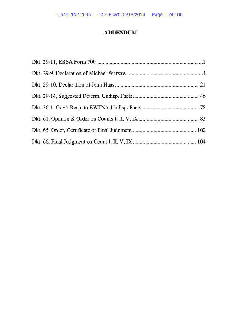 Get the free EBSA Form 700 Certification