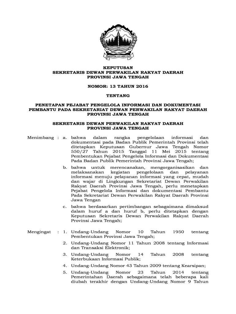 Government agencies and organizations dealing with public information are required to file penetapan pejabat pengelola informasi.