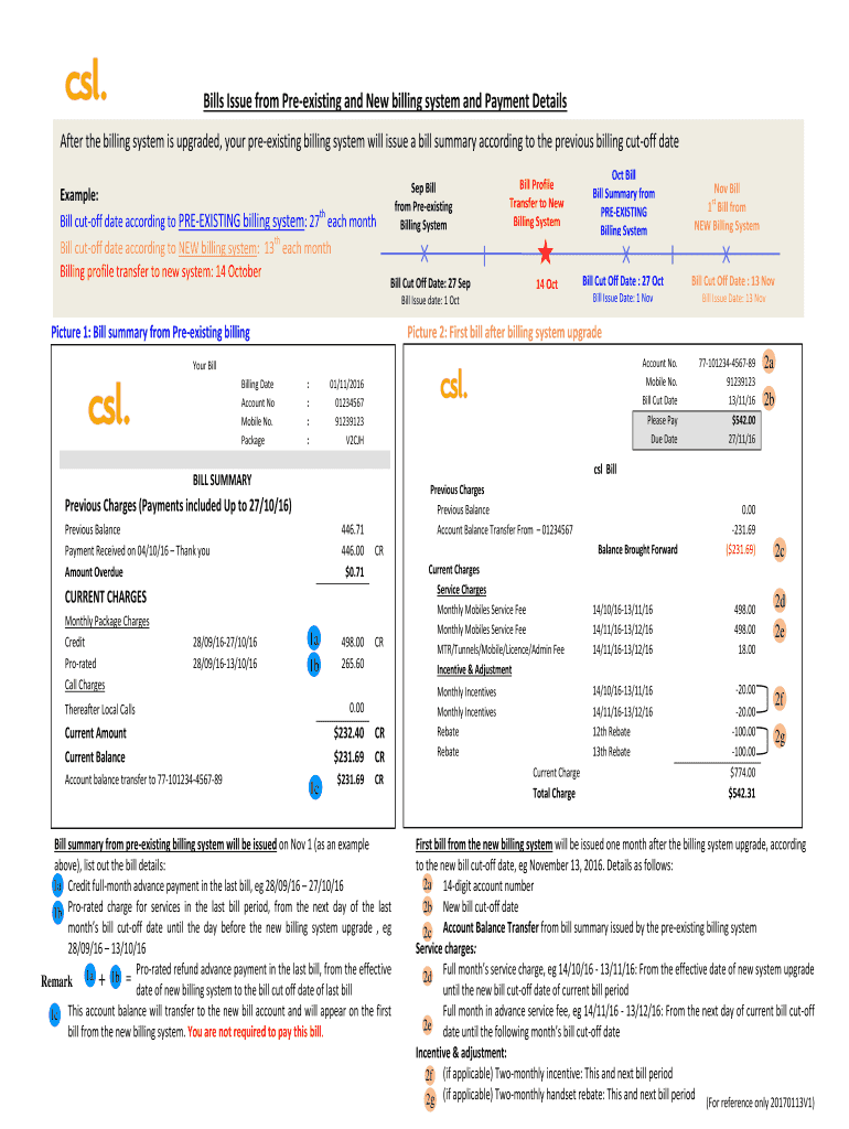After the billing system is upgraded, your preexisting billing system will issue a bill summary according to the previous billing
