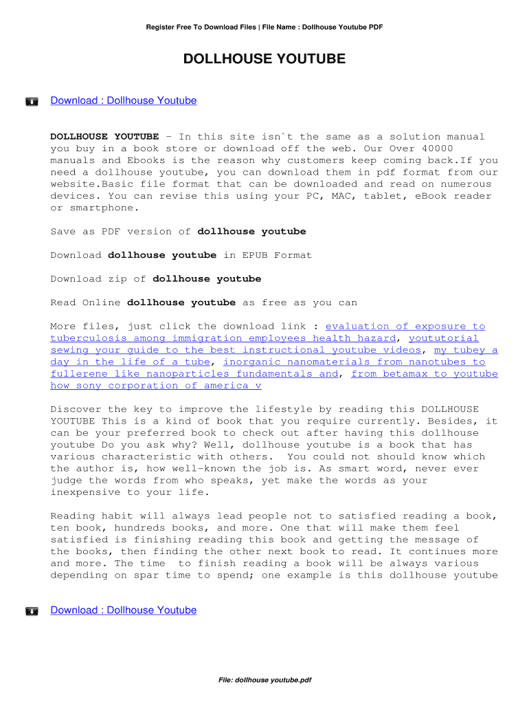 Get the Register Free To Download Files File Name : Dollhouse Youtube PDF