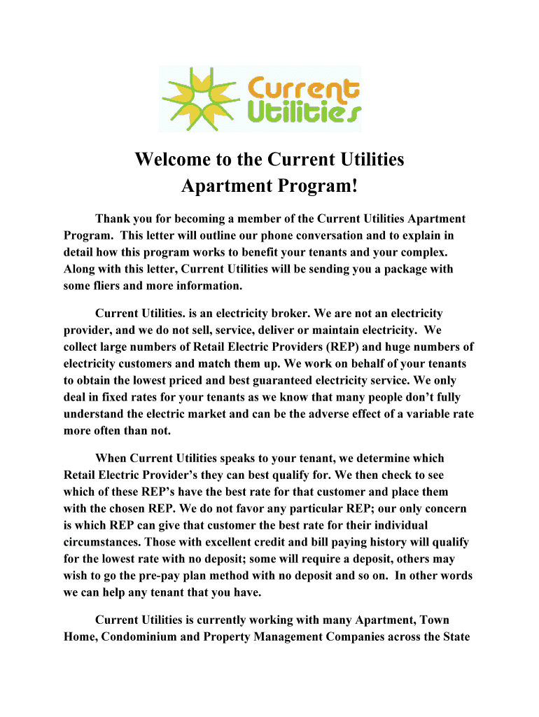 Get the free Welcome to the Current Utilities