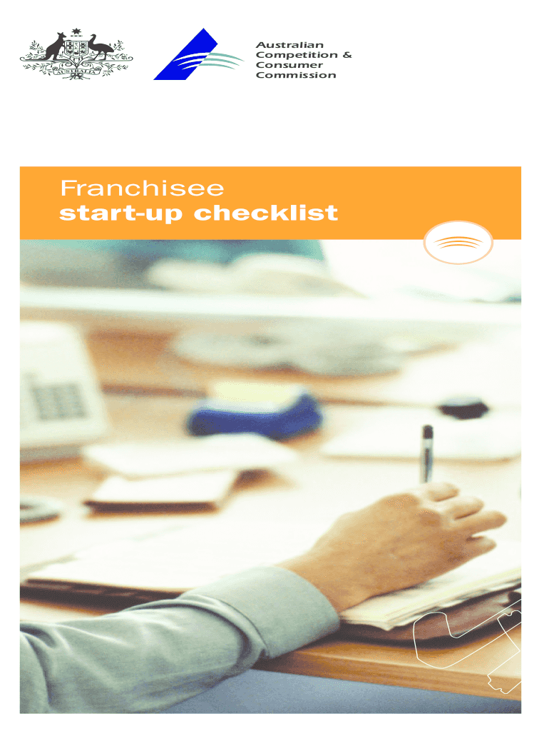 Franchisee startup checklist Australian Competition and Consumer Commission 23 Marcus Clarke Street, Canberra, Australian Capital Territory 2601 First published by the CCC 2010 10 9 8 7 6 5 4 3 2