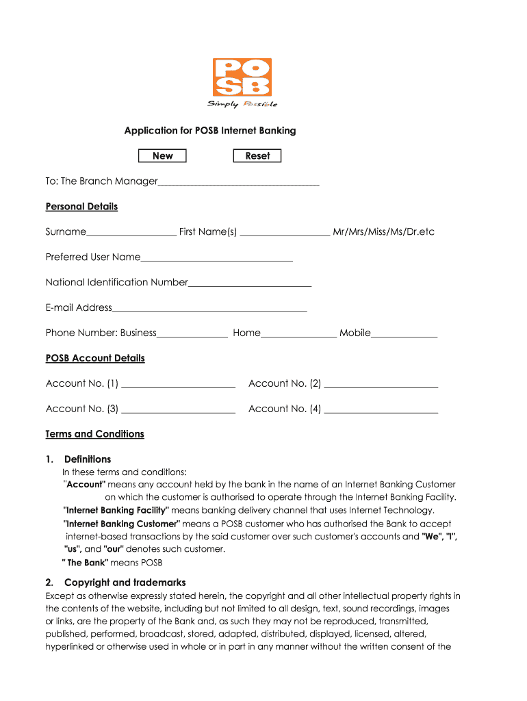 The application for posb internet is a form to apply for online banking services from POSB.