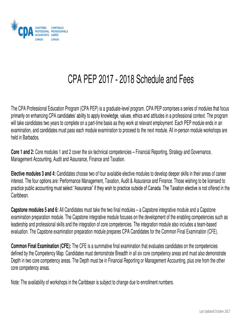 CPA PEP 2017 2018 Schedule and Fees The CPA Professional Education Program (CPA PEP) is a graduate level program. CPA PEP comprises a series of modules that focus primarily on enhancing CPA candidates