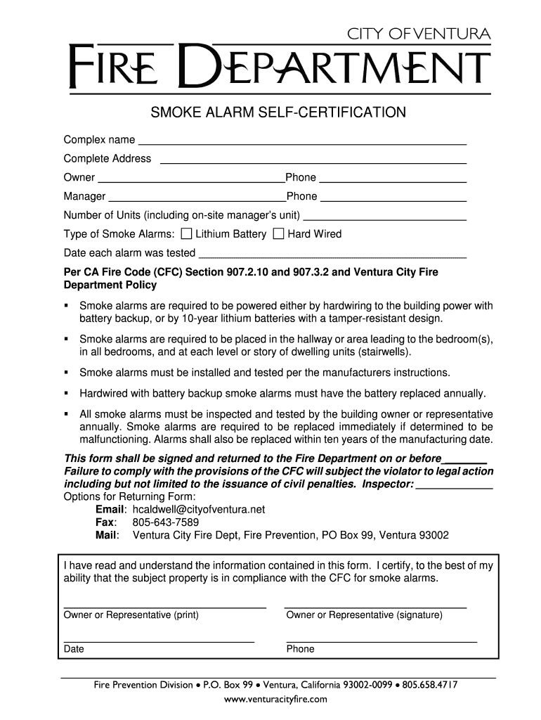 If you have any questions regarding the Smoke Alarm Self-Certification Form, it's best to contact the Ventura Fire Department directly for assistance with form-specific concerns and requirements.