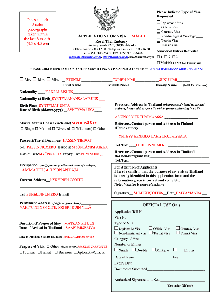 What is thailand visa application form