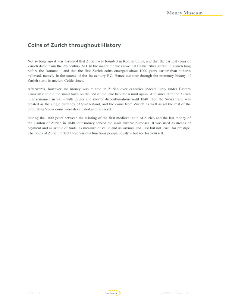 Get the free Not so long ago it was assumed that Zurich was founded in Roman times, and that the ...