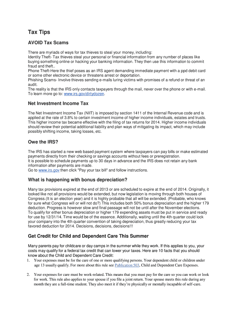 The IRS Tax Tips and Guidelines is an informational document used by taxpayers to educate themselves on tax obligations and available credits.