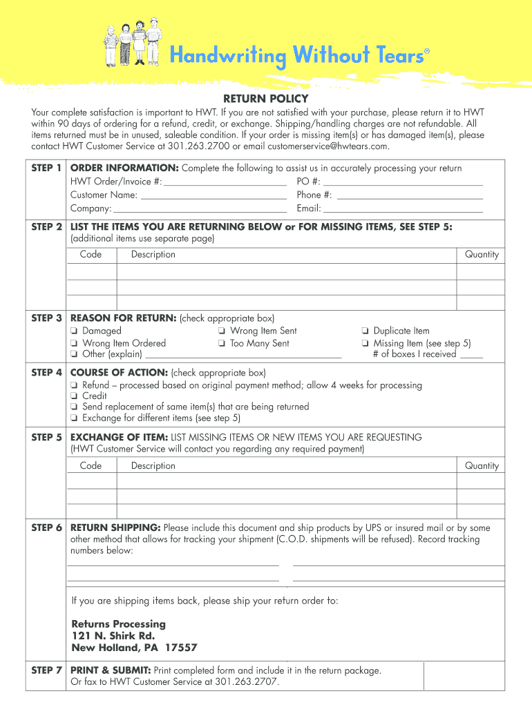 Get the free Returns processing form