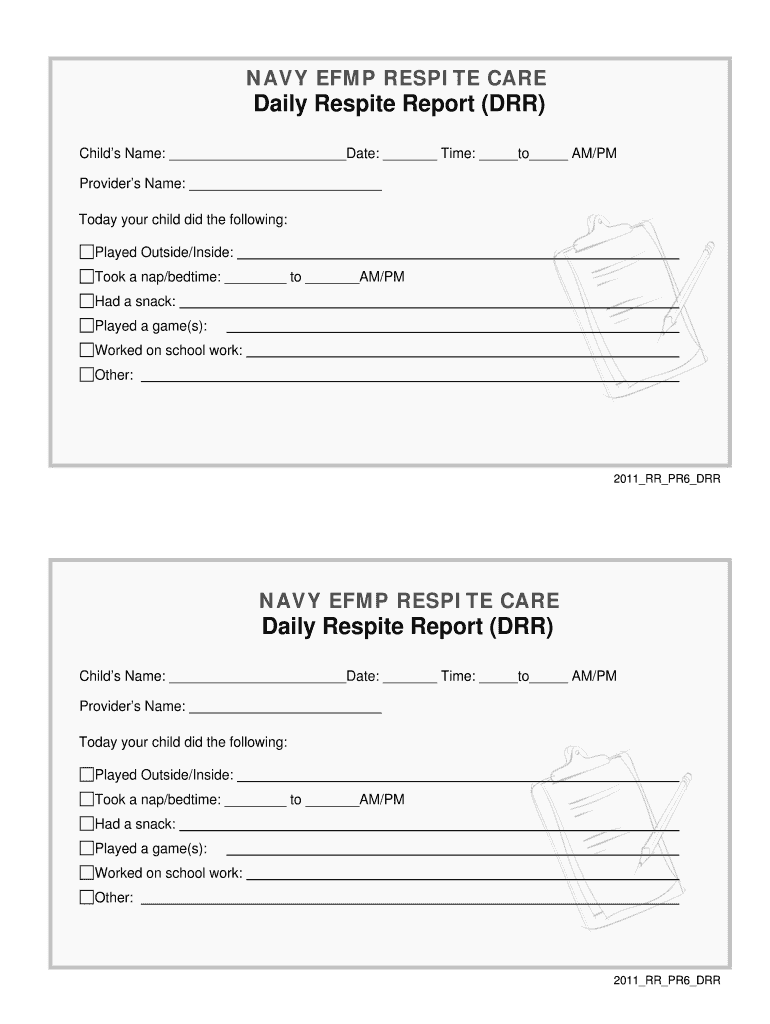 Get the free Navy EFMP Respite Care Daily Respite Report