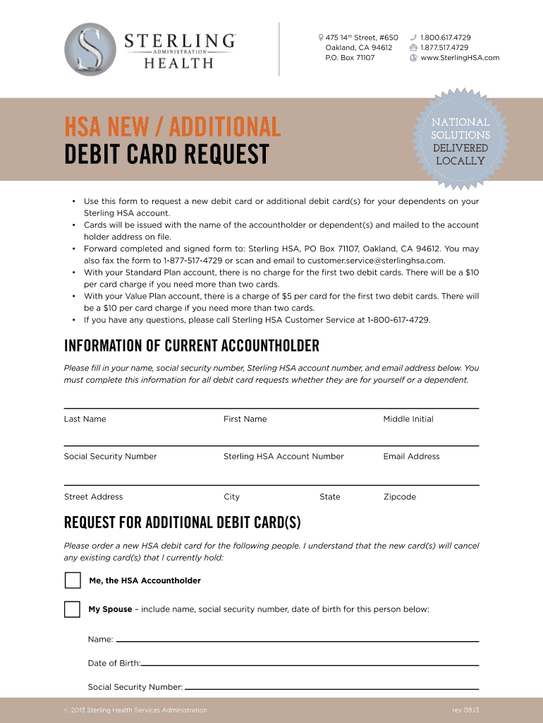 Get the free Sterling HSA Debit Card Request Form