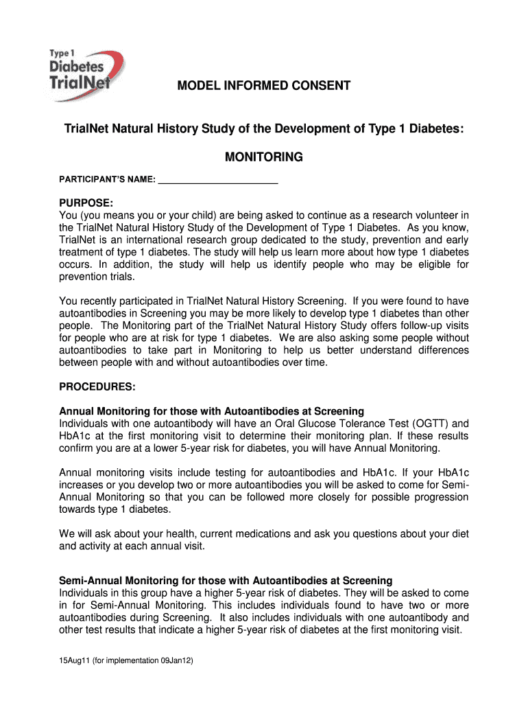 Get the free TrialNet Natural History Study Consent Form