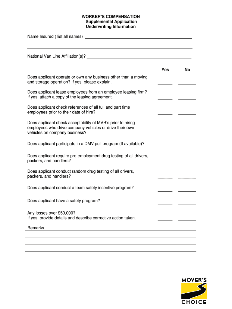 This application is particularly relevant for businesses operating in industries that require specialized workers' compensation coverage, such as moving and storage operations. Employers within these sectors should take note of the eligibility criteria for utilizing the form.