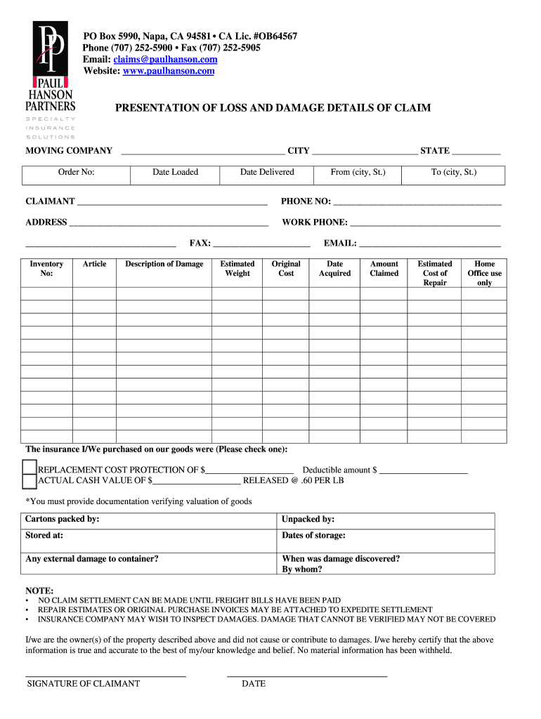 Fill Out Your Moving Company Claim Form with pdfFiller