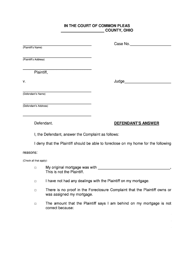 Purpose and Benefits of the Ohio Foreclosure Answer Form