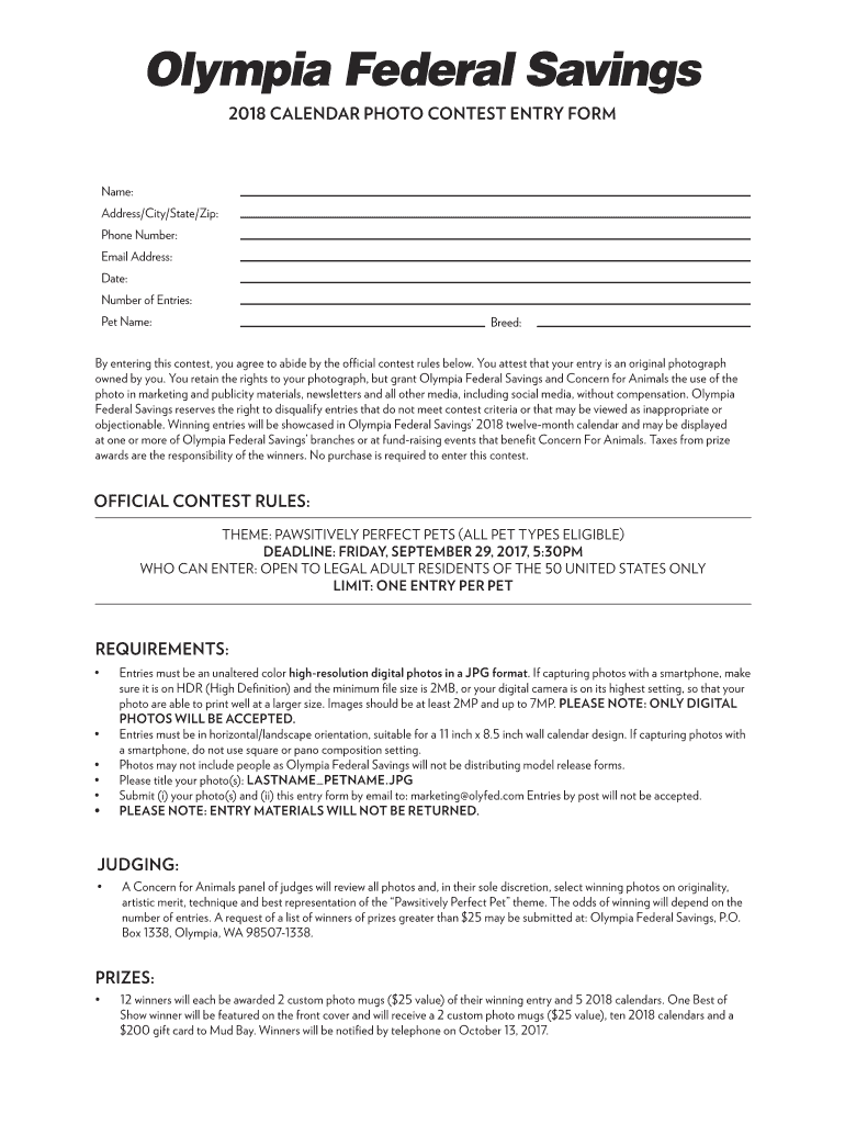 2018 CALENDAR PHOTO CONTEST ENTRY Forename:
