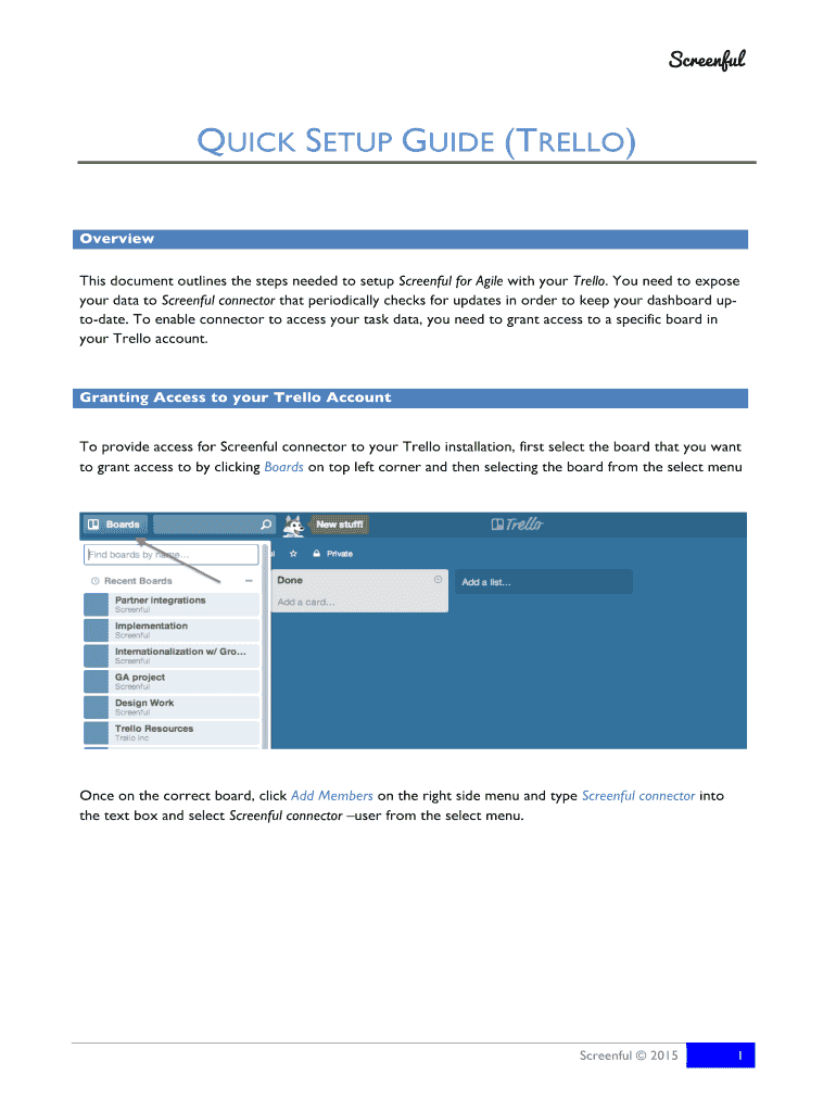 This document outlines the steps needed to set up Screenful for Agile with your Trello. You need to expose