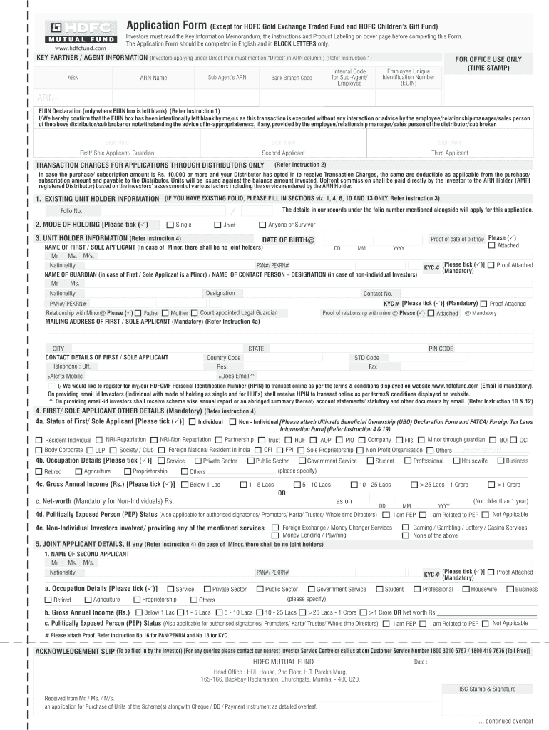 Application Form (Except for HDFC Gold Exchange Traded Fund and HDFC Children's Gift Fund)