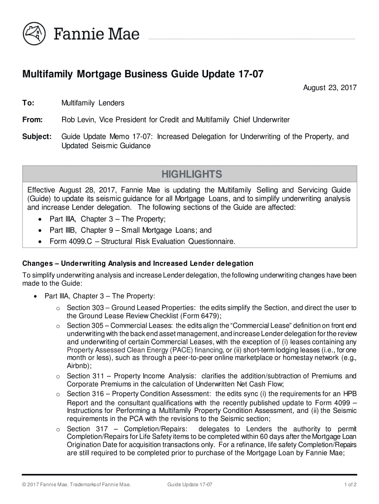 To:Multifamily LendersFrom:Rob Kevin, Vice President for Credit and Multifamily Chief UnderwriterSubject:Guide Update Memo 1707: Increased