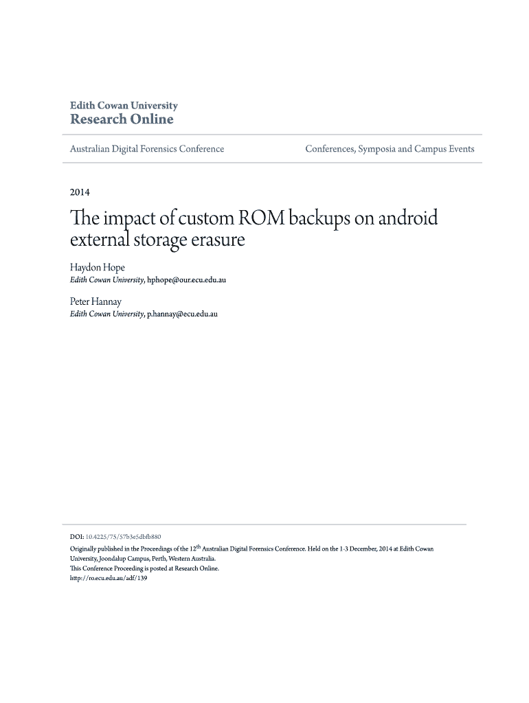 Australian Digital Forensics ConferenceConferences, Symposia and Campus Events2014The impact of custom ROM backups on android