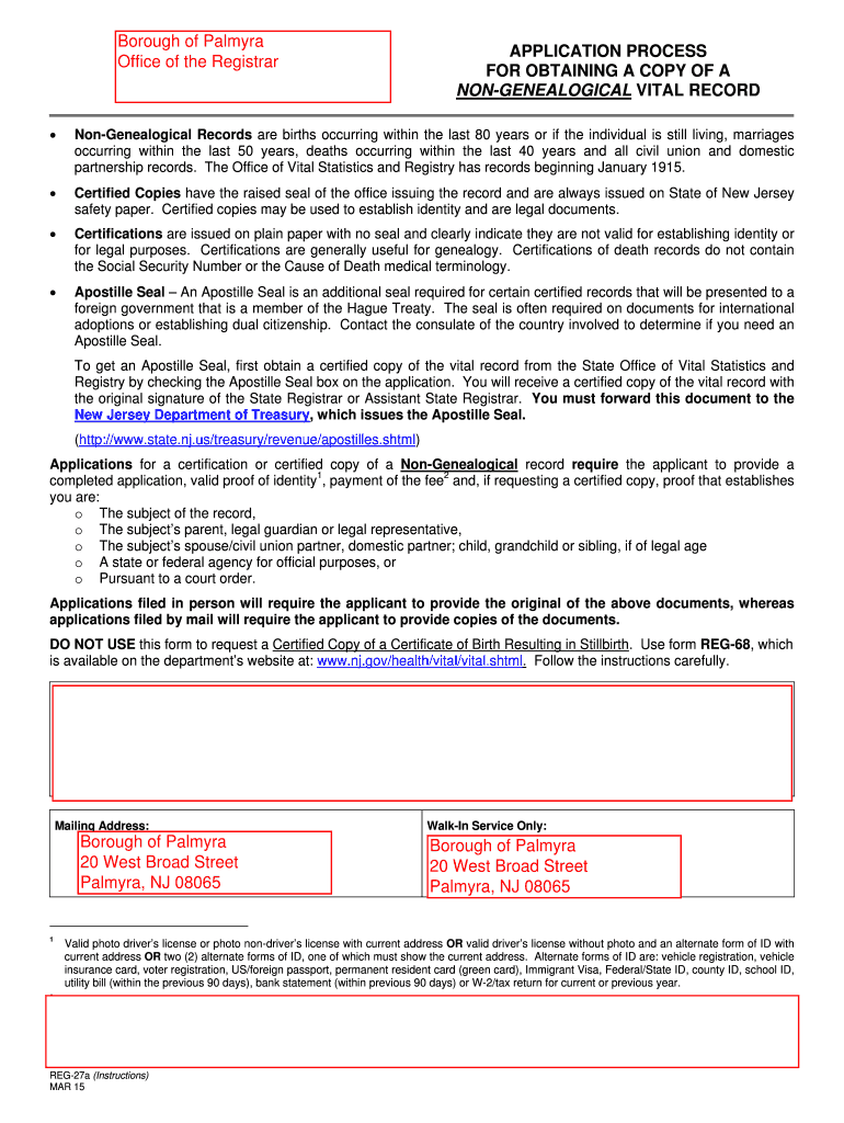 Get the free Non-Genealogical Records are births occurring within the last 80 years or if the ind...