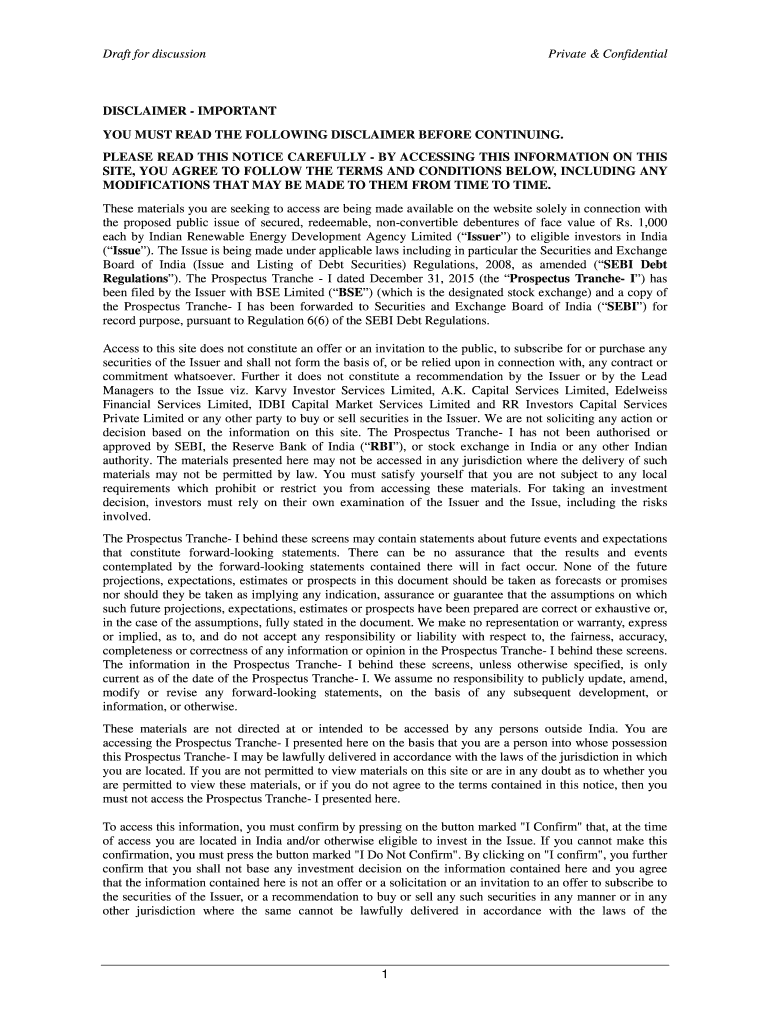 Draft for discussion Private & ConfidentialDISCLAIMER IMPORTANT YOU MUST READ THE FOLLOWING DISCLAIMER BEFORE CONTINUING. PLEASE READ THIS NOTICE CAREFULLY BY ACCESSING THIS INFORMATION ON THIS SITE,