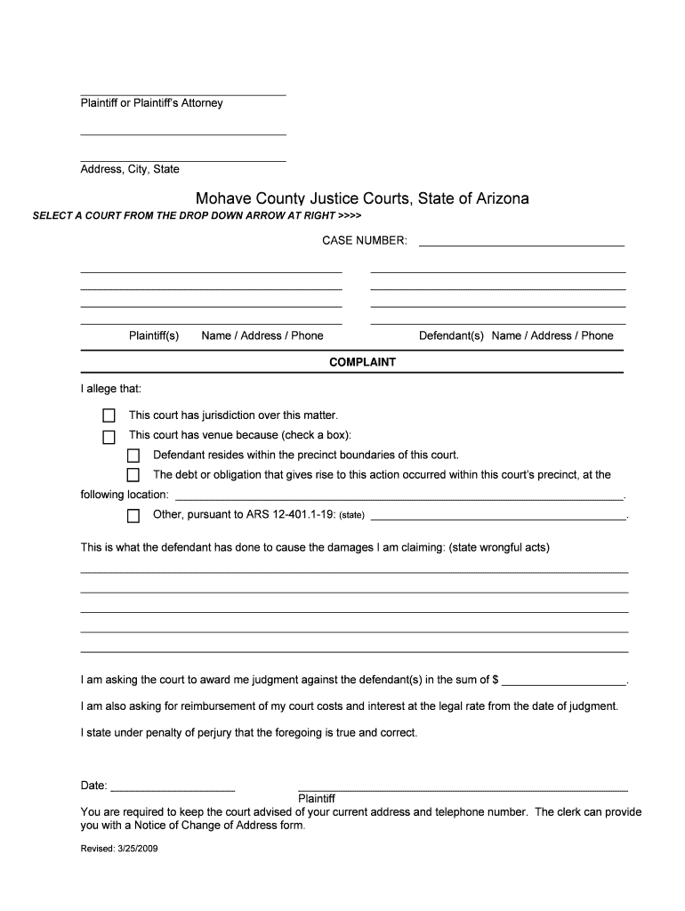Reset Plaintiff or Plaintiffs Attorney Address, City, State Mohave County Justice Courts, State of Arizona SELECT ASELECTFROM THE DROP DEWDROP DOWN ARROW AT RIGHT COURT A COURT FROM THE ARROW AT RIGHT