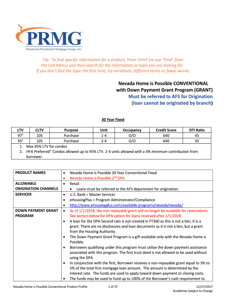Get the free Nevada Home is Possible CONVENTIONAL