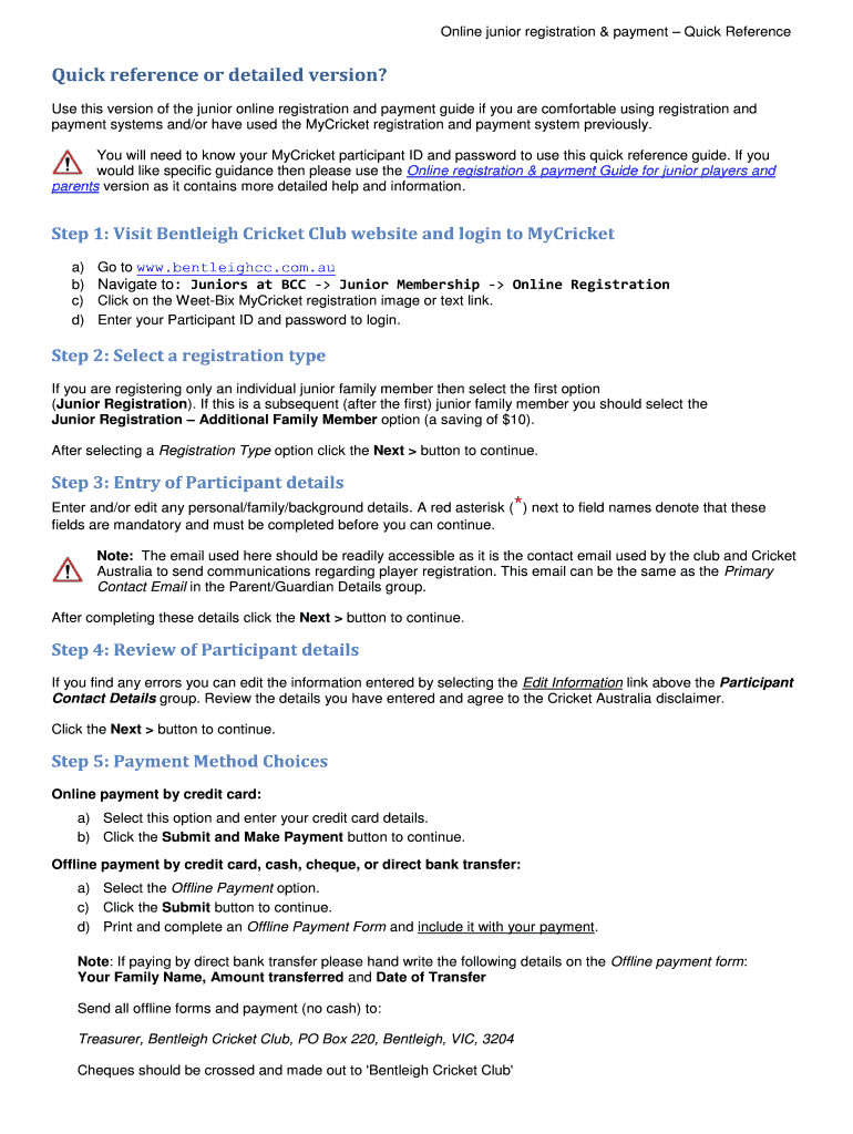 Online junior registration & payment Quick ReferenceQuick reference or detailed version? Use this version of the junior online registration and payment guide if you are comfortable using registration
