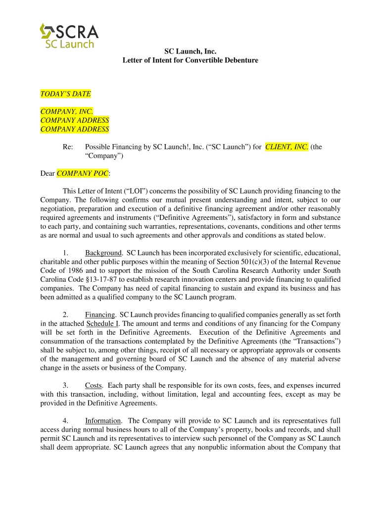 Get the free Letter of Intent for Convertible Debenture