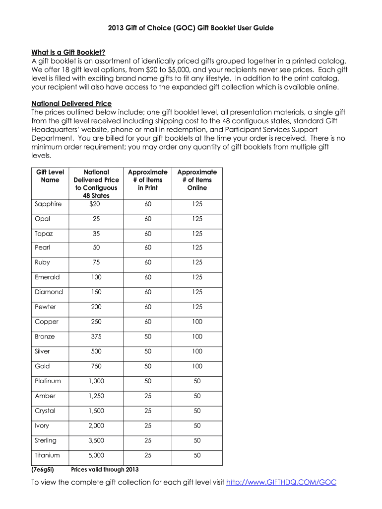 2013 Gift of Choice (GO) Gift Booklet User Guide