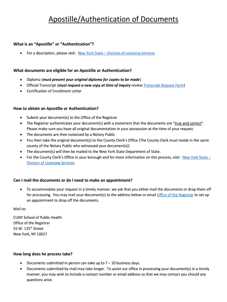 Apostle/Authentication of Documents What is an Apostle or Authentication? For a description, please visit: New York State Division of Licensing ServicesWhat documents are eligible for an Apostle or