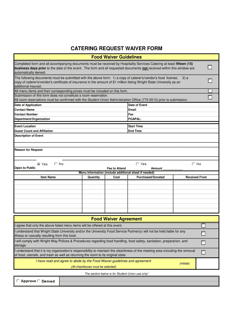 CATERING REQUEST WAIVER FORM