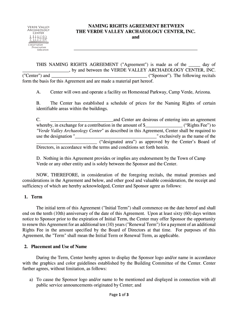 How to fill out naming rights agreement between