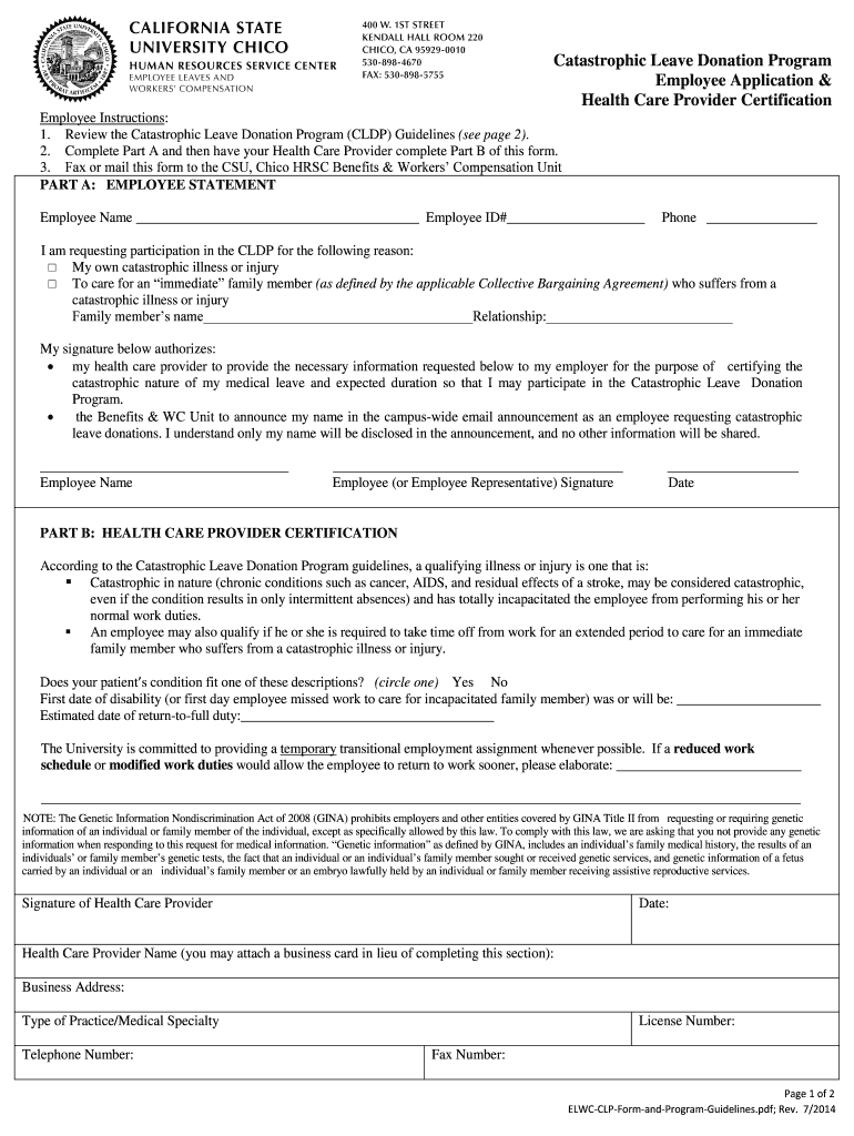 Catastrophic Leave Donation Program Employee Application & Health Care Provider Certification Employee Instructions: 1. Review the Catastrophic Leave Donation Program (CLIP) Guidelines (see page 2).