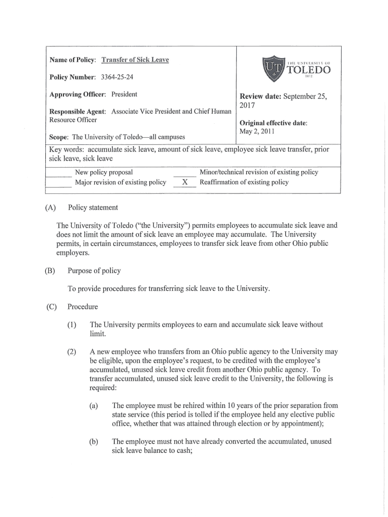 Policy Number: 33642524Approving Officer: PresidentReview date: September 25,Responsible Agent: Associate Vice President and Chief Human